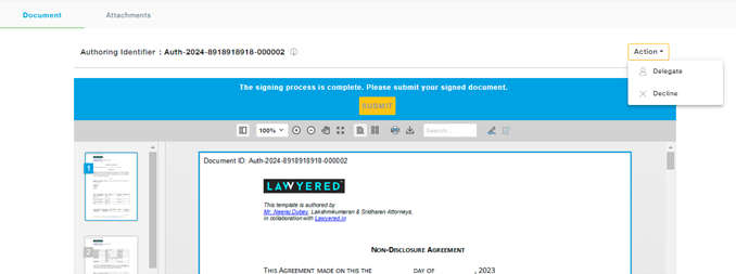 - Now click on the Submit button to submit the signed document to the next signatory in the Documents tab.