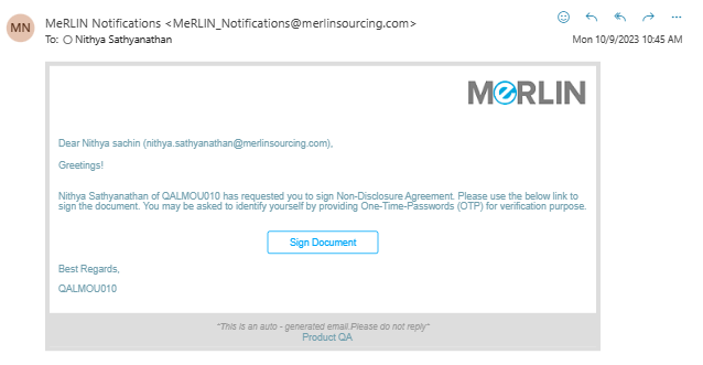 - Open the email you have received from MeRLIN and click on Sign Document.