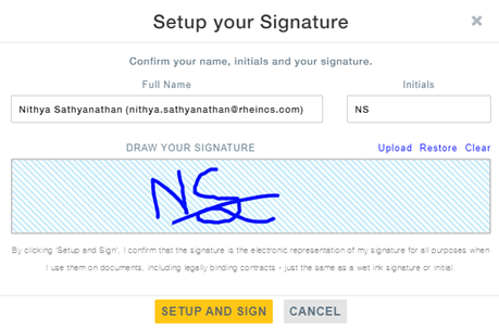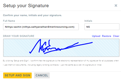 - Click on Setup & Sign.