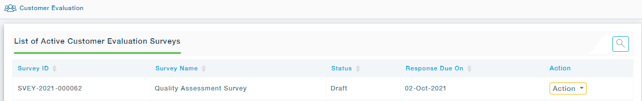 Menu Path: Customer Evaluation Surveys >> Active Customer Evaluation Surveys