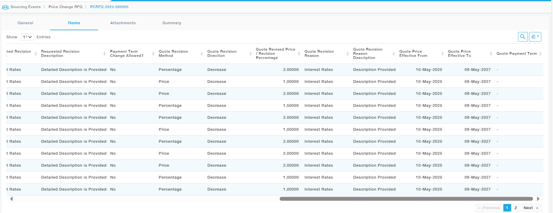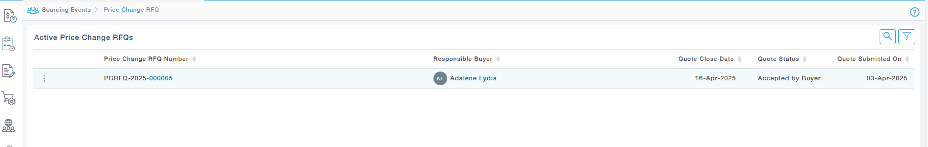 Menu path : Sourcing Events –> Price Change RFQs