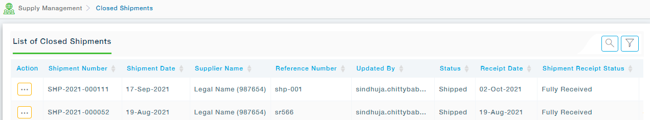 The Closed Shipments will display all the shipments that have been received in full by the buyer and have completed all the payment-related processes. You can view the shipment items by choosing the View under the Action.