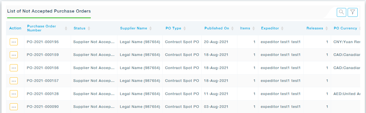 All the Purchase Orders that you have not accepted will be listed in the Rejected Purchase Order list. You can choose to View the PO by clicking on the View option under Action.
