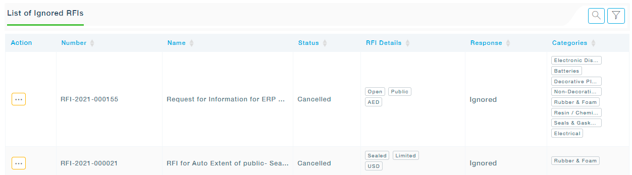 All the Ignored RFIs can be viewed under this submenu.