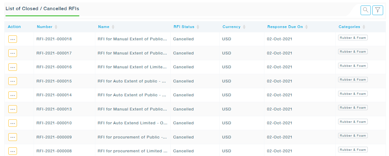 All the Closed and Canceled RFIs can be viewed under this submenu.