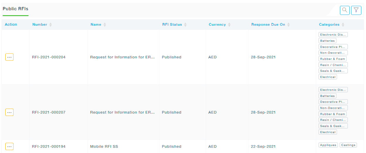 This submenu will display the complete list of Public RFIs. If found to be suitable, from the list, the User can choose to “Interested in Responding”.