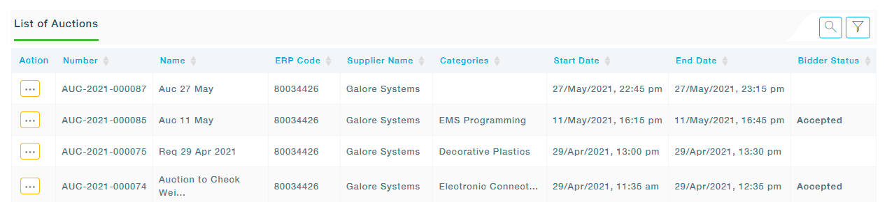 Login into MeRLIN Supplier portal and navigate to “Auction” under the left side navigation section to view the list of Auctions published for you.